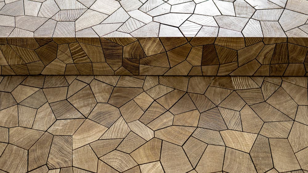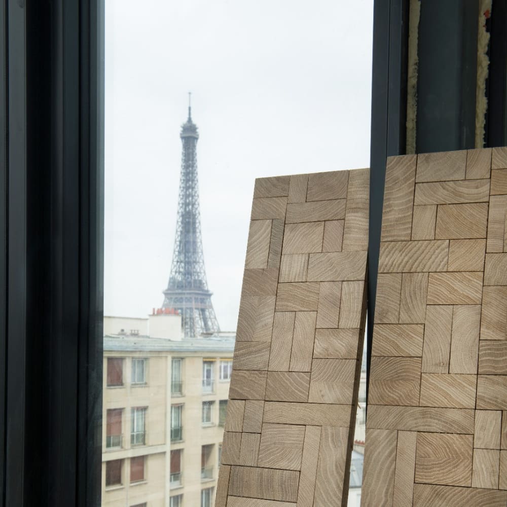 Wzór nawiązuje do weneckich mozaik i drewnianych bruków Paryża z XIX wieku. Został opracowany tak, aby tworzyć płynny, niekończący się układ drewna bez widocznych powtórzeń. Dzięki temu powierzchnia zachowuje organiczny rytm i naturalną harmonię, stanowiąc współczesną interpretację klasycznego rzemiosła w nowoczesnej formie.